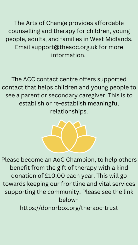 The AoC & The Arts of Change Trust, 27 Holloway Chambers, Priory Street, Dudley, West Midlands, DY1 1HA. Registered Charity Number: 1177257